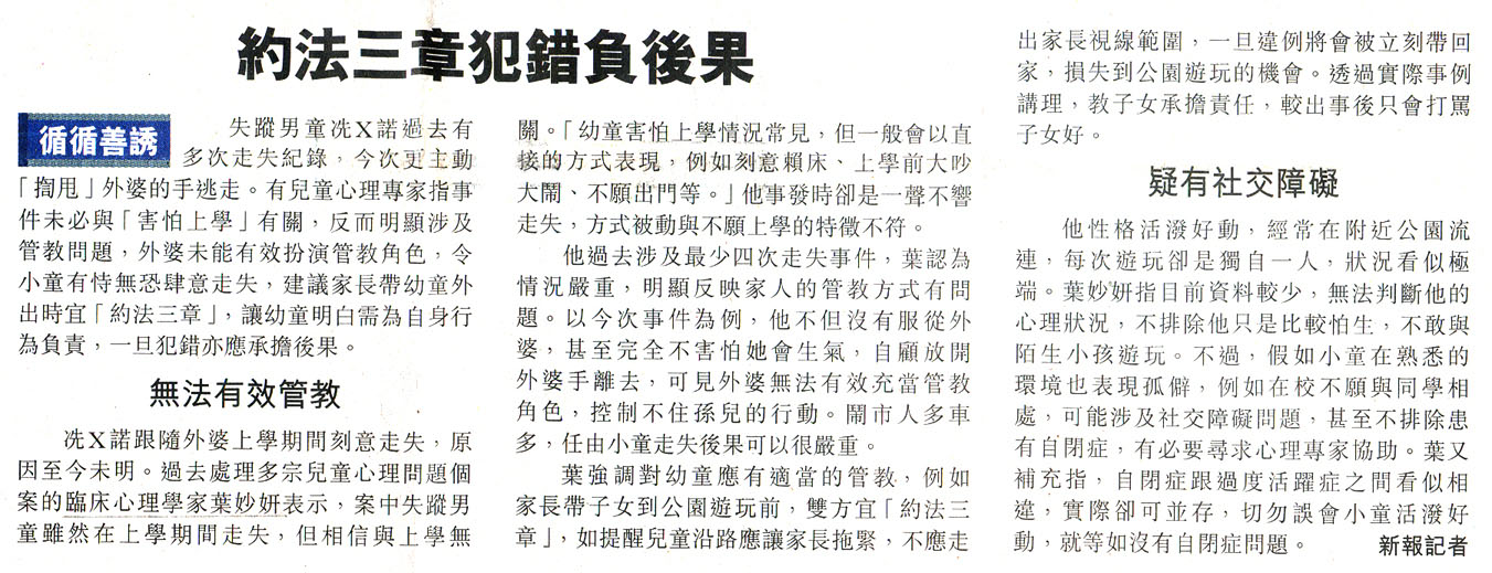 約法三章孩子犯錯負後果